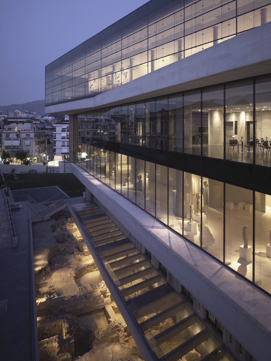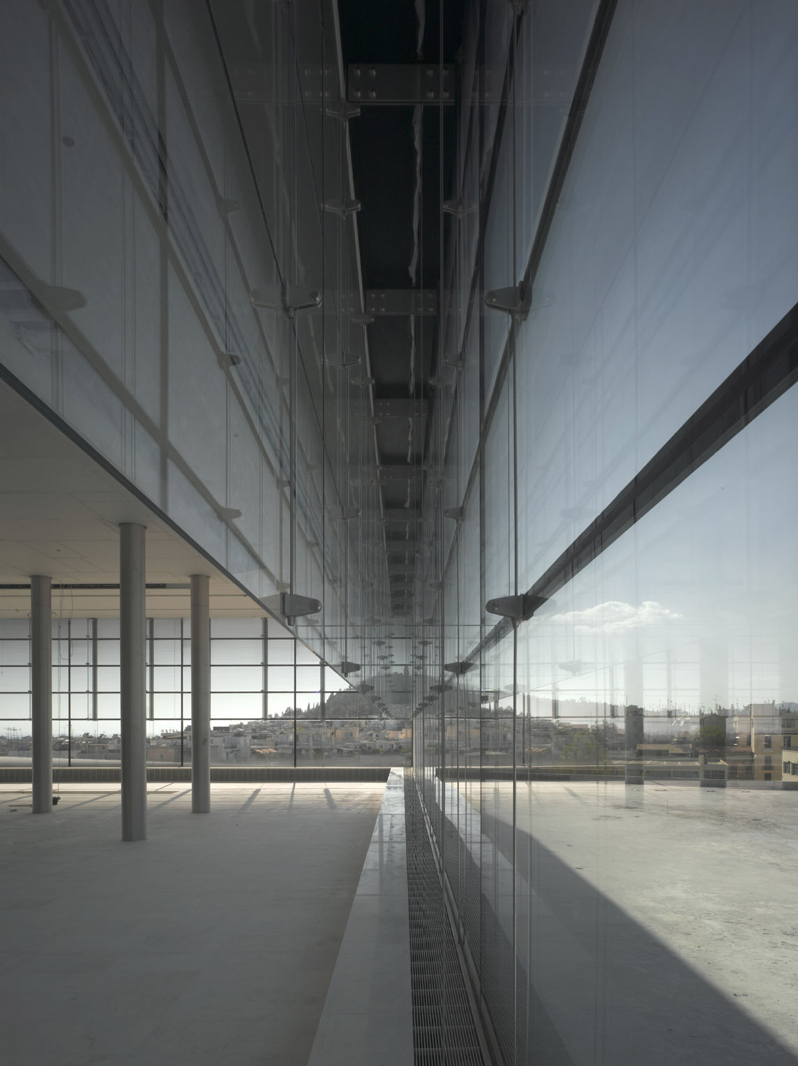 Um Besuchern einen bestmöglichen Blick auf die Akropolis und auf historische Ausgrabungen bieten zu können wurde vom Auftraggeber größter Wert auf Transparenz gelegt. Zum Einsatz kamen zwei nur aus Glas bestehende Fassadensysteme: