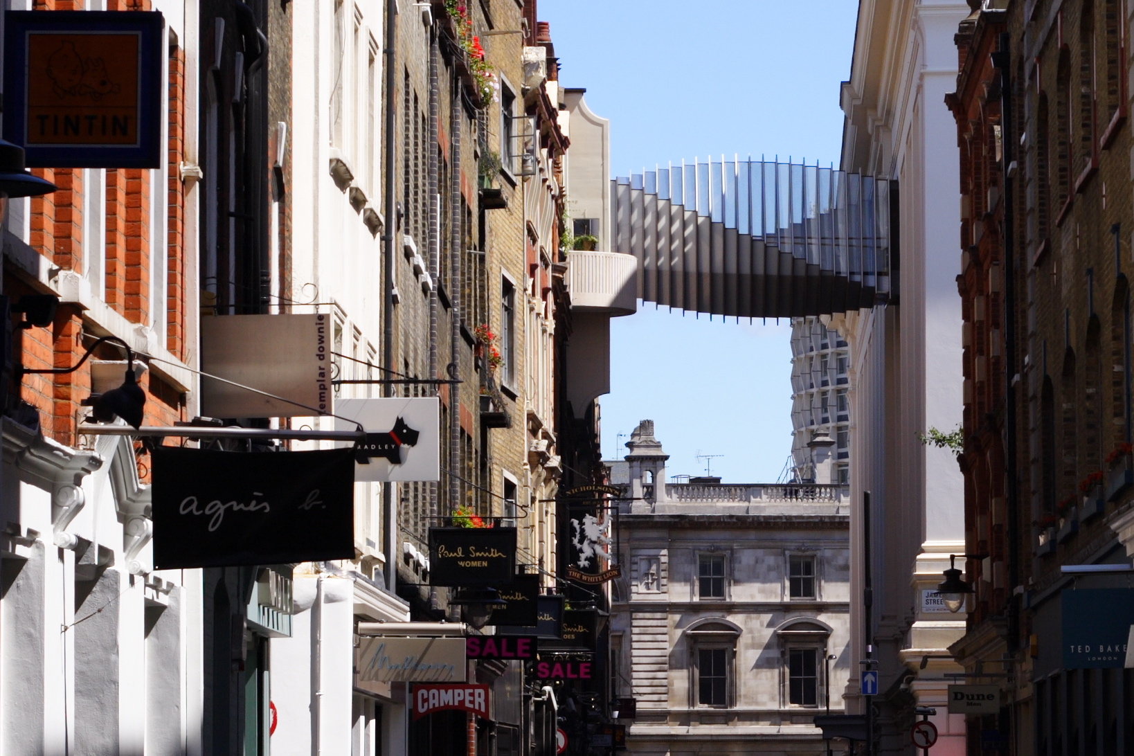Die Floral Street Bridge dient als Verbindung zwischen der Royal Ballet School und dem Royal Opera House in London. Die Gewinner des Architekturwettbewerbes Wilkonson Eyre Architects setzten das Thema „Bewegung“ um indem sie den Rechteckquerschnitt über die gesamte Länge rotieren ließen.
