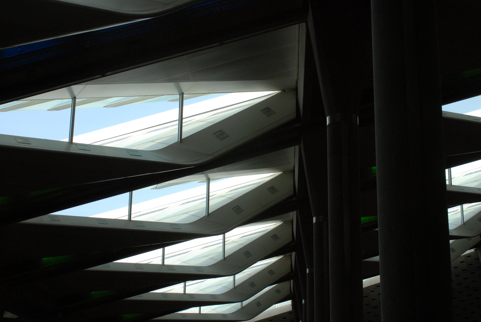 Für Konstruktion des Daches aus 14,4 x 9,6 m großen Elementen wurden eigens gekrümmte Verbundelemente mit einer wabenförmigen Verbindung entwickelt.