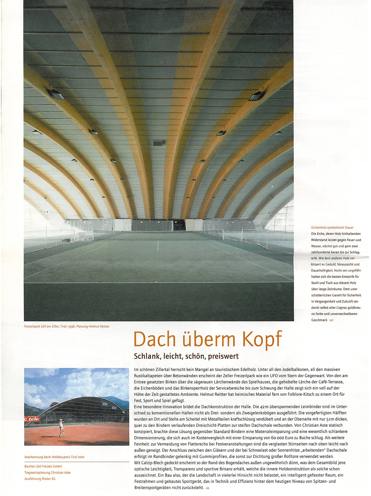 Sportstättenbau und Bäderanlagen 'Tennis- und Eissportanlage Freizeitpark Zell am Ziller'