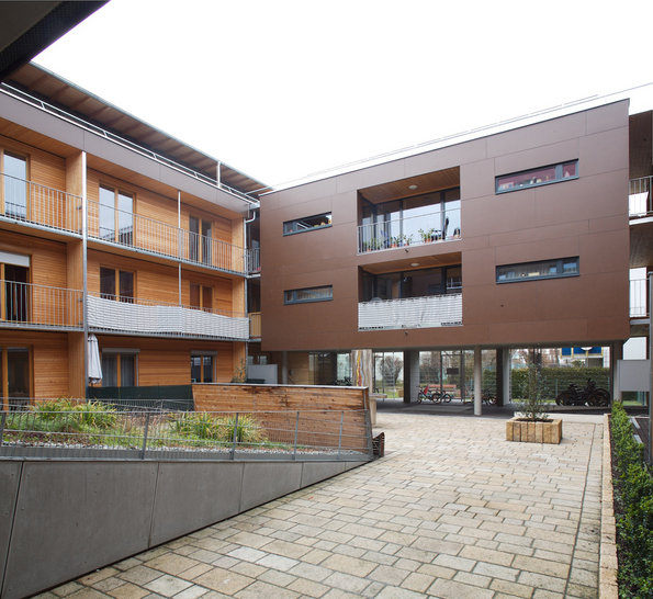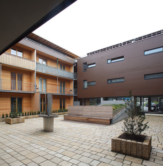 Situated in between the multi-story building quarter, the detached housing estate, next to a busy street, the need for a certain degree of introversion in living was apparent, right from the beginning of the small architectural competition. The half-open inner courtyard is surrounded by double sided orientated loft - apartments. Suitability for single-parents was the main focus when designing the 2-room apartments.