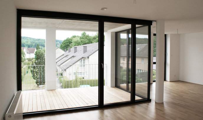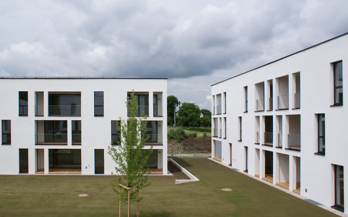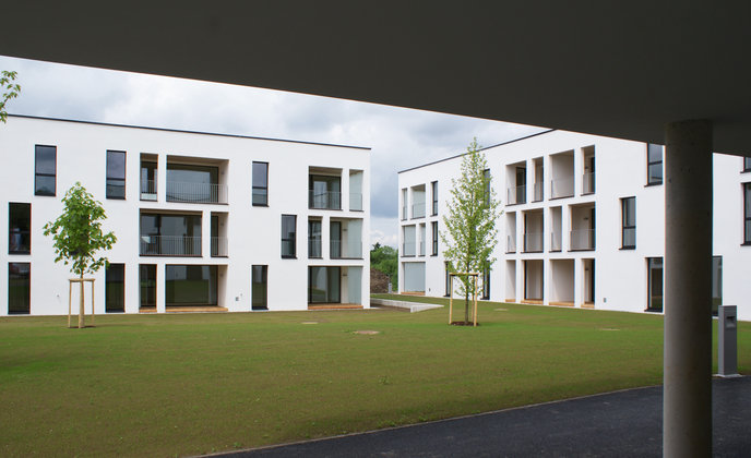 Die Reihenhäuser liegen, unserer Meinung nach, stimmiger am Perimeter, orientiert zum Wald und zur Siedlung.