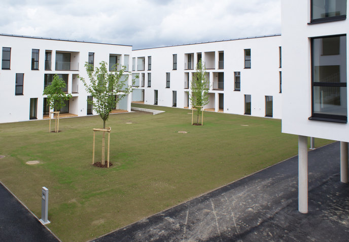 Alle Baumassen bilden zusammen ein durchlässiges Netzwerk von unterschiedlichen Hofsituationen, eine klare Mitte als gemeinsamer Siedlungsaußenraum, mit einem Platz für Feste.