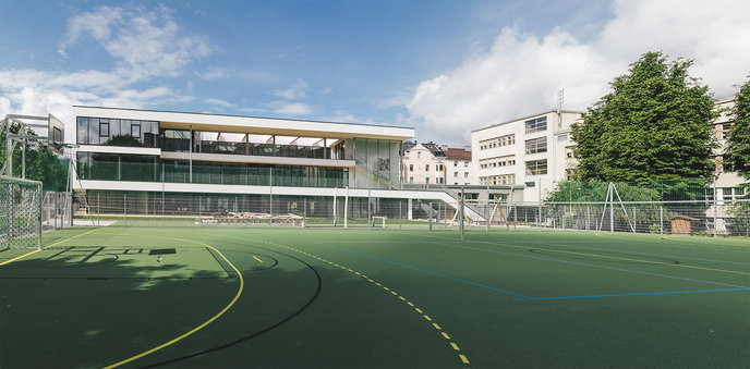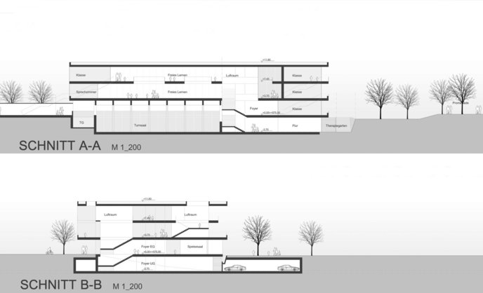 Hier lässt man sich gerne nieder. Es gibt nach allen Richtungen etwas zu sehen, daher scheint uns eine "Rundumorientierung" richtig. Der Neubau sollte der Baumann-Schule ein unaufdringlicher, respektvoller aber auch selbstbewusster Partner sein.