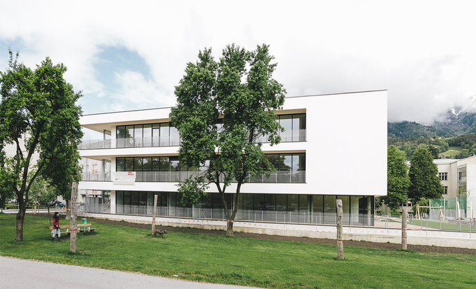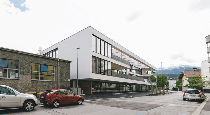 Der Anordnung, Dimension und Belichtung der Zonen zwischen den Klassen, es gibt keine "Gänge", wurde große Aufmerksamkeit geschenkt. Den Weg durch die Schule sehen wir als abwechslungsreiche Promenade entlang von "Plätzen" und Terrassen.