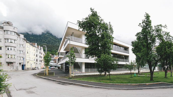 AUSSENRÄUME: Neubau, Altbau und der Wohnbau im Osten bilden zusammen einen gemeinsamen grünen Hof.
