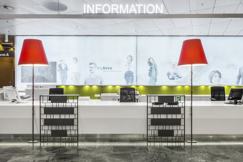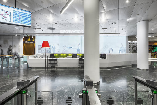 Konzeptionelle fotografische Dokumentation diverser neuer Möblagen wie Sitzbänke Rezeptions-Pult, Info Pult und der Zugangskontrollen mit Schwerpunkt Sichtbarkeit der Materialen und Funktion.