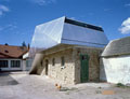 Der blanke Aluminiumkörper nimmt die Stimmungen des Wetters und der Umgebung auf. Der Bau wirkt immateriell, sein Zweck scheint undurchsichtig. Der neue Innenraum ist ganz anders als die Räume im alten Bauernhof und gleicht eher einem Zelt als einer festen Behausung.