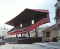 Doch gerade diese Kopflastigkeit versetzt die knallrote Tribüne in einen fein ausbalancierten, geradezu dramatischen Schwebezustand. Zudem ergeben sich reizvolle Durchblicke zur Altstadt und in die Landschaft des Mostviertels.