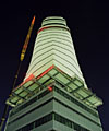 Der Neubau des Flugsicherungstowers wurde notwendig, um die Übersicht über das Geschehen des erweiterten Vorfeldes - bedingt durch den Terminalausbau "Skylink" - zu gewährleisten. Als optimale Position wurde ein Grundstück im direkten Zufahrtsbereich zum Flughafen fixiert. Diese prominente Lage des neuen Towers bot die Chance, im Entree zum Flughafenareal ein städtebauliches Zeichen mit Signalcharakter zu schaffen. Die Kombination der Funktionen Flugsicherungstechnik im Sockel und der eigentlichen Kontrollräume im Kopf des Bauwerks führte zu einem Bau mit Turmcharakter. In Assoziation zum Verkehrsmittel Flugzeug (Geschwindigkeit, Energie) entwickelt dieser Turm eine vertikale Dynamik. Der Gebäudesockel richtet sich nach den Baufluchtlinien, der Kopf des Turmes nach der Hauptblickrichtung der Kanzel. Die ca. 45°-Verdrehung der beiden Segmente zueinander überbrückt eine Membran, die die Drehbewegung zwischen den verschiedenen Gebäudeteilen sichtbar macht. Durch diese Maßnahme entsteht ein Gebäude, das in seinem Charakter eher einem Hochhaus als einem "klassischen" Tower entspricht. Unser Ziel war es, dem Kontrollturm eine eigene Identität, ein unverwechselbares Erscheinungsbild zu geben. Der Flughafen Wien sollte mit dem neuen Tower ein Gebäude erhalten, das einem Leuchtturm gleich Signale an seine Umgebung abgibt. Je nach Lichtsituation wirkt die Membranhaut unterschiedlich. Nachts wird das Mittelstück durch Beleuchtung oder Projektionen körperhafter und entwickelt ein Eigenleben. Denkbare Bespielungsszenarien sind künstlerische Interventionen, nützliche Infos wie Wetterberichte oder lukrative Großflächenwerbung. Aufgrund der besonderen Höhe des Gebäudes von über 100 Metern ist es bereits von großer Entfernung sichtbar und dient so zur Orientierung der ankommenden Reisenden und der Personen innerhalb des Flughafens. M.Z. Martin Zechner, geb. 1962 in Graz. Architekturstudium an der TU Graz. Christoph Zechner, geb. 1961 in Graz. Architekturstudium an der TU Graz. Gründung des Architekturbüros Zechner & Zechner 1988 in Wien. Zahlreiche Realisierungen im Bereich Verkehrsbau im Zuge des Programms "Corporate Design für die Bahn", der "Bahnhofsoffensive" und des Hochleistungsstreckenausbaus. Weiters Realisierungen im Bereich sozialer Wohnbau: Europan 1 (1993), Jeglitschgründe Leoben (1999), Laaerberg Wien (2000). Freizeitzentrum Amstetten (2000). Neben dem Projekt Tower Flughafen Wien sind zurzeit die Projekte Bahnhof Flughafen Wien und Bahnhof Flughafen Graz in Bearbeitung. Weiterführende Links: www.zechner.com Projektliste in der nextroom architektur datenbank |