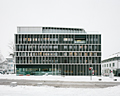 Das Gebäude der Raiffeisenbank Im Rheintal setzt sich in seiner Grundsubstanz aus drei Bauabschnitten zusammen. Das Ursprungsgebäude von 1956 wurde in 2 Etappen, entlang der Stadtstraße (1973) und entlang der Viehmarktstraße (1990), erweitert. Mit dem Bau der Stadtgarage (2008) erhielt die Bank die Möglichkeit, eine direkte Anbindung zur neuen Garage zu schaffen. Dies war der Beginn größerer Umbauarbeiten in und am Gesamtgebäude. Im nun fertig gestellten Bauabschnitt wurde eine umfassende thermische Sanierung des Gebäudes, die Umnutzung bzw. der Umbau des 4. Obergeschosses von Wohnungen in Büros, eine Aufstockung sowie die Neugestaltung der Fassaden realisiert. Aufgrund der unterschiedlichen Bauetappen entsprach das Gebäude nicht mehr den baugesetzlichen Mindeststandards in Bezug auf Wärmeschutz. Die energetische Optimierung des Gesamtgebäudes war ein großes Anliegen des Bauherrn. Daraus resultierte die Zielvorgabe, den Bestand auf das Niveau eines Niedrigenergiehauses zu verbessern. Bei laufendem Betrieb wurden die Hüllflächen des Bauteils Stadtstraße komplett neu isoliert und alle Bestandsfenster durch moderne Holz-Alu-Fenster mit 3-fach-Verglasung ersetzt. Das neu geschaffene Attikageschoss dient der Bank als Sitzungs-, Fortbildungs- und Veranstaltungsbereich für ca. 110 Personen. Raumhohe Glasflächen ermöglichen einen Rundblick über das Zentrum von Dornbirn und das nahe Umland. Durch einen Rücksprung der Aufstockung gegenüber der ost- und nordseitigen Fassadenflucht wird Platz für eine großzügige Dachterrasse geschaffen. Eine veränderbare "äußere Haut" – Beschattung und gestalterisches Element zugleich – überlagert die bestehende Bandfassade mit vertikalen Drehläden aus natureloxiertem Aluminium, die im geöffneten Zustand, in einem wechselnden Abstand von 40 und 80 cm, den Baukörper neu rhythmisieren. Auch in seiner Vertikalität wird das Gebäude neu gegliedert. In jedem Geschoss sind die Drehläden in unterschiedlichen Höhen ausgeführt, was dem 6-geschossigen Baukörper eine neue Maßstäblichkeit verleiht. Werden die Drehläden an der Süd- und Ostfassade geschlossen, ändert sich die Wahrnehmung des Gebäudes. Die vertikal betonte Fassadengliederung mit ihrer gleichzeitigen Tiefenwirkung wechselt in ein flächiges Erscheinungsbild. Die Drehläden bilden eine geschlossene und schützende Hülle. Von außen wirkt diese Hülle opak. Von innen ist durch die Perforation der Bleche eine uneingeschränkte Durchsicht nach außen möglich. Eine enge Rasterlochung ermöglicht einen Lichtdurchgang bei gleichzeitiger Reduktion des solaren Eintrages auf die gesamte Fassadenfläche. Die Steuerung der Drehläden erfolgt automatisch und in Abhängigkeit von den Wetterbedingungen. Den Nutzern ist es möglich, manuell in die Steuerung einzugreifen und nach eigenem Wunsch die Drehläden zu schließen oder zu öffnen. Auch durch die tages- und witterungsbedingten Lichtverhältnisse ändert die natureloxierte Gebäudehülle ihre dezente Grundfarbe. R.B. Rene Bechter, geb. 1971 in Dornbirn. Studium der Architektur an der Leopold Franzens Universität Innsbruck und der TU Wien. 1999 Diplom bei Volker Giencke. Danach Mitarbeiter bei Marte.Marte Architekten und Baumschlager Eberle. 2004 Selbstständigkeit mit Bürositz in Bregenz. Seit 2009 gemeinsames Büro mit Michelangelo Zaffignani. Michelangelo Zaffignani, geb. 1967 in Dornbirn. Studium der Architektur an der Leopold Franzens Universität Innsbruck. 1997 Diplom bei Rainer Köberl. Danach freier Mitarbeiter bei Marte.Marte Architekten. 1999 selbstständig in der Bürogemeinschaft aix architects in Feldkirch. Seit 2009 gemeinsames Büro mit Rene Bechter. Realisierte Projekte (Auswahl): Zentrale Raiffeisenbank Im Rheintal – Aufstockung und Fassadenneugestaltung (2010), Erweiterung und Adaptierung der Messe Innsbruck in Zusammenarbeit mit Cukrowicz Nachbaur Architekten und Baumeister Thomas Marte (2011). Aktuelle Projekte (Auswahl): Neubau KWB Leitstelle in Silz, Tirol, TIWAG Besucherzentrum in Silz, Tirol, Pfarrhaus Krumbach in Zusammenarbeit mit Bernardo Bader und Hermann Kaufmann Architekten. Auszeichnungen (Auswahl): Ernst A. Plischke Preis, Anerkennung, in Zusammenarbeit mit Josef Truog (2008), Bauherrenpreis der ZV Österreich, Nominierung (2011), Bauherrenpreis der ZV Österreich, Nominierung, in Zusammenarbeit mit Cukrowicz Nachbaur Architekten und Thomas Marte (2012), Staatspreis der Architektur, Nominierung (2012). Weiterführende Links: www.bzzt.at Projektliste in der nextroom architektur datenbank |