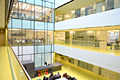 Einen transparenten Zugang zu Forschung und Lehre zu ermöglichen und dabei den Menschen und das lebendige Sein einer Universität in den Mittelpunkt zu stellen – diese Vorgaben erscheinen gerade im zukunftsorientierten Bereich der Life Sciences unabdingbar. Das Centrum für Chemie und Biomedizin in Innsbruck führt zudem zwei bislang getrennte Universitäten zusammen: die Universität für Chemie/Pharmazie und die Medizinische Universität Innsbruck für Theoretische Medizin. Inmitten der gewachsenen urbanen Strukturen Innsbrucks realisierte DIN A4 Architektur ein Bauprojekt, das den hochkomplexen technischen Anforderungen eines Forschungszentrums genügt und gleichzeitig, durch die offene Gestaltung im Inneren, Wissenschaft greifbar erscheinen lässt. Ein zweigeschossiges, mit Tageslicht durchflutetes Foyer bildet das Zentrum, um das sich Hörsäle, Seminarräume, Unterrichtslabors und die Mensa gruppieren. Begegnung und Kommunikation zwischen Studierenden, Lehrenden und Forschenden werden so ermöglicht und durch architektonische Querverbindungen gezielt gefördert. Der kompakte Baukörper gliedert sich durch funktionell und gestalterisch bedingte Höfe, Sichtachsen und Rücksprünge. Über den unverbauten Vorplatz und den zur Innpromenade geöffneten Garten ist das Gebäude direkt vom Fuß- und Radweg aus erreichbar. Die Metallfassade aus Alu-Waben-Paneelen in perlweiß und die darin eingelassenen Sonnenschutzgläser in Goldtönen resultieren – je nach Blickwinkel und Witterung – in einem sich ständig verändernden Erscheinungsbild. DIN A4 Architektur Reinhold Mayer, geb. 1954 in Wels. HTL für Hochbau in Linz, Mitarbeit im Architekturbüro Dr. Hans Aigner in Linz. Geschäftsführer der Corus Bausysteme Österreich GmbH für die Dachmarke Kalzip, verantwortlich für das Vertriebsgebiet South East Europe (bis 2007). Seit 2008 Geschäftsführer der nora flooring systems GmbH in Wels, verantwortlich für das Vertriebsgebiet Österreich/Ungarn. Conrad Messner, geb. 1968 in Hall in Tirol. HTL für Hochbau in Innsbruck. Studium an der TU Innsbruck, 1993 Abschluss mit Diplomarbeit bei Josef Lackner. Mitglied der Bayerischen Architektenkammer. 1993 gemeinsames Büro mit Markus Prackwieser. 1993 Gründung der Architekturwerkstatt din a4 in Innsbruck, mit Markus Prackwieser (geb. 1968) und (bis 2012) Othmar Zobl (geb. 1967). 2013 Namensänderung in DIN A4 Architektur. Das mittlerweile 18-köpfige Team wird heute von Conrad Messner und Markus Prackwieser geführt. Realisierte Projekte (Auswahl): Congress Centrum Alpbach (1997), Betriebszentrum in Porr (2001), Dorfzentrum Mils (2003), Wohnbebauung Sportplatz in Schwaz (2004), Passivwohnanlage Lodenareal – die bisher größte Passivhauswohnanlage in Europa (2005), Volksschule in Mils (2006), Neubau der Universität für Chemie/Pharmazie und Theoretische Medizin in Innsbruck (2006), Justizzentrum Korneuburg (2008), Haus des Kindes in Aldrans (2009), Olympisches Dorf 2012 in Innsbruck (2010). Aktuelle Projekte (Auswahl): Leben am Sonnenhang in Innsbruck, Wohn- und Businesspark in Graz-Waltendorf, Büro-und Forschungsgebäude in Innsbruck, Büro- und Forschungsgebäude in Sofia, Bulgarien, Produktionsgebäude Swarovski Optik in Wien. Weiterführende Links: www.nora.com www.din-a4.at Projektliste in der nextroom architektur datenbank |