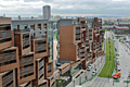 City Museum City Museum Ljubljana is one of the first projects, dating from 1998–2002. This project involves the renovation and extension of the Auersperg Palace, located in the heart of the protected historical city centre of Ljubljana. The competition entry suggested a spiral itinerary for the visitor to walk through exhibition spaces with added elements between the wings of the palace, as the spaces were previously disconnected and labyrinthine. The palace and its site have a very rich history, from prehistory to the Romans and the medieval times, with each era adding a feature to the building. During the preparation activities for the renovation, a large-scale archaeological research was conducted, with the suspicion that there were rich archaeological remains under the courtyard and the internal atrium. The extension follows the path of the visitor and is a smooth, curvilinear form that follows the landscape approach rather than an architectural one. Student House Basket apartments in Paris are the most recent project of OFIS, built at the end of 2012. This project represents the other side of the architectural approach that OFIS investigates in many of their housing projects, having predefined rectangular forms where most of research is done in the facade layer. The project is located on a long and very narrow site, on the edge of Parc La Vilette in Paris’ 19th district. To the northeast, the new Paris tram route passes along the site. The site borders a tram garage to the southwest, above which there is a football field. The parcel has a very particular configuration; 11 m in width and extending approximately 200 m in a north-south direction. This foreshadows the importance of processing the eastern facade overlooking the extension of the street Des Petits Ponts which hosts the tram and both cyclist and pedestrian walkways. The long volume of the building is divided into two parts connected with a narrow bridge. Between two volumes there is a garden. The building has 11 floors and the layout is very rational and modular. The elevation towards the street Des Petits Ponts contains studio-balconies-baskets of different sizes made from HPL timber stripes. They are randomly oriented to diversify the views and rhythm of the façade. The staggered baskets create a dynamic surface while breaking down the scale and proportion of the building. The elevation towards the football field has an open passage walkway with studio entrances enclosed with a 3D metal mesh. Both volumes are connected on the first floor with a narrow bridge which is also an open common space for students. The building is energy efficient to accommodate the desires of Paris' sustainable development efforts. OFIS Rok Oman, born in 1970 in Ljubljana. 1998, graduated from the Ljubljana School of Architecture, in 2000 graduated from London’s Architectural Association. Spela Videcnik, born in 1971 in Ljubljana. 1998 graduated from the Ljubljana School of Architecture, in 2000 graduated from London’s Architectural Association. 1996 establishing of OFIS arhitekti, based in Ljubljana, Slovenia and Paris, France. Realized projects (selection): Ljubljana City Museum (2004), Football Stadium in Maribor (2008), 180 apartments in Paris (2012). Current projects (selection): Football Stadium in Borisov, Belarus. Awards (selection): "Young architect of the year" Award in London (2000), Miami Bienal, honorable mention (2005), European Grand Prix for Innovation Award (2006), Mies van der Rohe Award, nomination (2006), Silver IOC/IAKS medal for their football stadium (2009). Weiterführende Links: www.ofis-a.si Projektliste in der nextroom architektur datenbank |