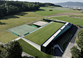 Der Campus der Eidgenössischen Technischen Hochschule (ETH) auf dem Hönggerberg in Zürich wird energetisch ausgebaut. Dazu zählt eine Sportanlage am östlichen Rand beim Erholungsgebiet Käferberg. Den Ort interpretierend, ist der Baukörper in den Hang mit einer Heuwiese geschoben und tritt nur mit der Westfassade in Erscheinung. Der Außenraum scheint durch das großzügige Foyer und über eine begrünte Rampe wieder ins Freie zu fließen. Attraktive Innenraumkonfigurationen schaffen ein angenehmes Ambiente für Lehre, Sportausbildung, Freizeitsport, Entspannung und selbst für festliche Großereignisse. Die SCIENCE CITY wuchs in mehreren Etappen zur jetzigen Größe heran. Das städtebauliche Konzept für die neue Hochschulsportanlage thematisiert die Lage am Übergang vom verdichteten Campus zum offenen Erholungsgebiet. Den Abschluss einer leichten Senke bildend, ist der flache Baukörper tief in den sanft auslaufenden Hang geschoben, sodass das natürliche Terrain gleitend in die begrünte Dachfläche übergeht. Zum Campus hin tritt das Bauwerk hingegen mit einer breit gelagerten Fassade in Erscheinung, wobei die markanten Gebäudekanten oben und seitlich angeschrägt sind. Dadurch wirkt es einerseits niedriger und ist andererseits moderat dem Geländeverlauf angepasst. Damit wird sowohl der Qualität des Orts als auch den spezifischen Funktionen Ausdruck verliehen. Der flache Baukörper von grün-kristalliner Anmutung enthält eine Dreifachturnhalle mit Tribüne und Garderoben sowie Tanz- und Gymnastiksäle, Krafträume und einen Regenerationsbereich. Um die Halle herum sind allseitig auf mehreren Geschossen Erschließungszonen, Nebenräume und weitere Nutzungen angelagert. Eine teils opake, teils transparente Fassade aus grünem Wärmeschutzglas evoziert den Eindruck eines kristallinen Körpers. Der von außen kommende Bewegungsstrom wird einerseits aufgefangen, geteilt und den verschiedenen Funktionen zugeleitet, andererseits wird dessen räumliche Fortsetzung in einen Grünraum umgedeutet. Eine zweite, nördlich gelegene Grünrampe verzahnt das Bauwerk ein weiteres Mal mit dem Außenraum. Die Deckenkonstruktion über der Halle spannt sich auch über Tribüne und Foyer. Sie vereinigt unter ihrem Dach eine in Höhe und Raumzonen differenzierte Topografie: einen großmaßstäblichen ”Raumplan‘, der über den Alltag des Unterrichts, der sportlichen Nutzung hinaus für festliche Anlässe einen würdigen Rahmen bietet. Äußere Form sowie innere Gliederung und Zonierung stehen damit in einem spannungsvollen Verhältnis von Übereinstimmung und Überlagerung, das für den individuellen Nachvollzug Anregung, Überraschung und architektonischen Genuss bietet. Walter Zschokke, 2008 Much Untertrifaller, geb. 1959 in Bregenz. Ab 1979 Architekturstudium an der TU Wien, Diplom bei Ernst Hiesmayr, ab 1986 eigenes Büro in Bregenz. Helmut Dietrich, geb. 1957 in Mellau. Ab 1977 Studium an der Technischen Universität in Wien, ab 1986 eigenes Büro. 1994 Gründung Dietrich | Untertrifaller Architekten in Bregenz, seit 2004 in Wien, seit 2005 in St. Gallen, Schweiz. Realisierte Projekte (Auswahl): Unternehmenszentrale Lauterach, Vorarlberg (2012), FH Kuchl, Salzburger Land (2009), Festspiel- und Kongresshaus in Bregenz (1998/2006), Stadthalle Wien (2006), ETH Sport Center Science City in Zürich (2009). Aktuelle Projekte (Auswahl): Neubaugürtel Kokerei Zollverein in Essen (Wettbewerb 2012), Seequartier in Bregenz (2017), Konzert- und Kongresshaus in Straßburg, Frankreich (2016), Kunsthochschule in Nancy, Frankreich (2014), Omicron Campus in Klaus, Vorarlberg (2014). Auszeichnungen (Auswahl): Piranesi Preis (1993), Staatspreis für Tourismus und Architektur (1994, 1998, 2002), Staatspreis für Architektur und Nachhaltigkeit (2006), Bauherrenpreis ZV Österreich (2000, 2003, 2006, 2009), Goldenes Verdienstzeichen des Landes Wien für H. Dietrich und M. Untertrifaller (2010). Weiterführende Links: www.dietrich.untertrifaller.com Projektliste in der nextroom architektur datenbank |