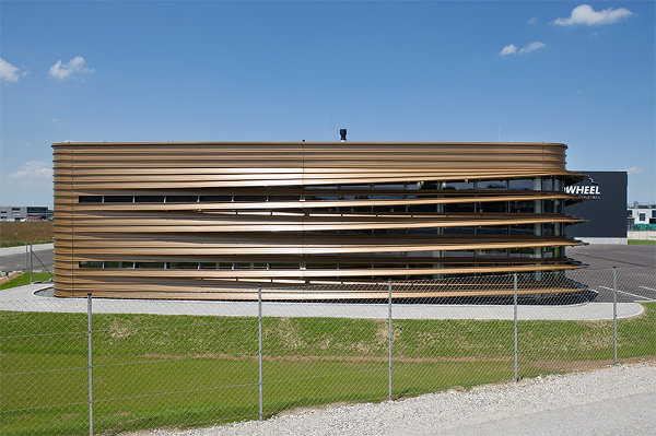 Am Beispiel der Firma Eurowheel kann dieser Ansatz in struktureller Hinsicht, aber auch auf der Ebene der Fassade gezeigt werden. Gemeinsam mit der Firma Peneder Fast Forward als Generalunternehmer wurde schon im Stadium der Vorentwurfsphase, die letztlich die Grundlage für den Auftrag auch aus bauwirtschaftlicher Sicht darstellte, die Idee der Lamellen-Fassade konstruktiv und technisch entwickelt. Die Abwägungen aus der Angemessenheit im Dialog mit den Forderungen der Ästhetik führten hier zur Verwendung der präzise und hochqualitativ hergestellten Profile der Firma Kalzip. Es bedurfte in weiterer Folge einer engagierten vertiefenden Planung, einem fach- und firmenübergreifenden Erfahrungsaustausch und großer handwerklicher Kompetenz, damit der Gebäudekomplex und die Lamellen-Fassade entsprechend den wirtschaftlichen, funktionalen, ästhetischen und nicht zuletzt normativen Vorgaben planmäßig und lagerichtig in Betrieb gehen konnte.