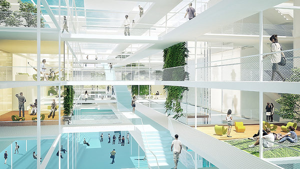 Wie dieser Paradigmenwechsel Grundlage eines architektonischen Konzeptes sein kann, zeigt das Projekt Office West von Caramel Architekten für Adidas. Mit der Vorgabe eines auf Raummodulen basierenden Raumprogramms bereitete der Bauherr schon bei der Auslobung den Weg zu einem grundlegend neuen Verständnis von Flexibilität im Bürobereich. Die Module versuchen alle möglichen Arbeits-, Besprechungs- und Entspannungssituationen als bezüglich Größe und räumlicher Ausbildung stark differenzierte Einheiten abzubilden. Flexibilität des Bürosystems bedeutet dann nicht mehr den permanenten Umbau der Arbeitsumgebung um die Mitarbeiter herum, sondern die permanente Bewegung der Mitarbeiter zwischen den für sie jeweils optimalen Büromodulen. Neu auftretende Anforderungen können durch die Adaptierung einzelner Module ohne Umbau des Systems umgesetzt werden. Bewegung wird zur Vorfreude auf die Zustandsänderung von Arbeit zu Entspannung und zurück und steigert die interne informelle Kommunikation.
