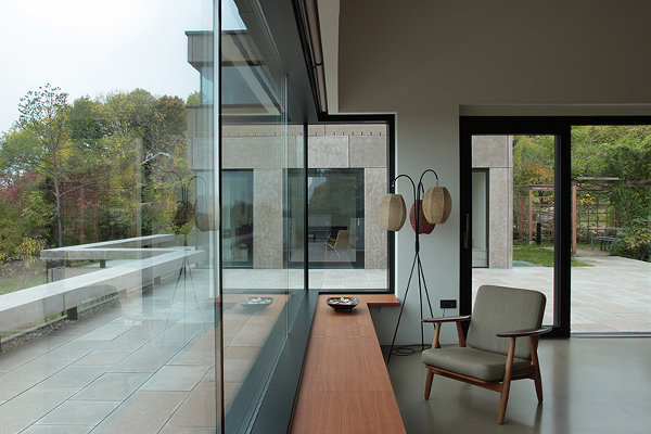 Zwei neue Häuser, innen miteinander verbunden/verwoben.