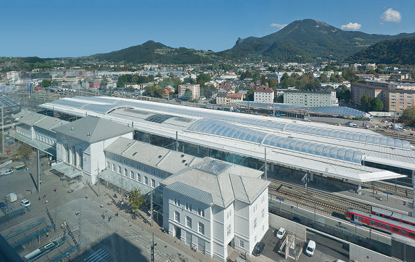 Die quer zu den Bahnsteigen geführte, über die historische Empfangshalle erschlossene, nach oben offene Passage unterhalb der Gleise weitet den Blick bis unter die historischen Tonnengewölbe der Bahnsteige. Die Neuordnung des Salzburger Bahnhofs ist zu einem urbanen Verdichtungsprojekt geworden, das nicht nur der Mobilität und dem Komfort der Reisenden dient, sondern auch öffentlichen Raum schafft und Stadtteile miteinander verbindet.