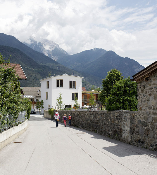 1998 hat die Gemeinde Inzing ein außergewöhnliches Projekt realisiert: Von Architekt Erich Gutmorgeth geplant und gebaut, wurden Kindergarten und Gemeindeamt unter einem gemeinsamen Dach untergebracht. Mehr Brücke als Haus – inhaltlich und räumlich – verbindet der Bau zwei Nord-Süd-Straßen des Ortes, indem er ebenerdig und im ersten Stock passagenartig durchschritten werden kann, zugleich einen schönen Garten umschließt, in welchem die Kindergartenkinder spielen, während die Amtszimmer nordwärts über den Ort schauen.