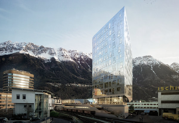Durch diese Symbiose aus Investition und Engagement entsteht ein urbaner Hybrid als Hochhaustypus. Das für Innsbrucker Verhältnisse mit 50 Metern hohe Gebäude besteht aus drei unterschiedlichen, deutlich ablesbaren Gebäudeteilen: einem Turm mit Wohnnutzung, einem öffentlichen Platz auf elf Metern Höhe – dem Kulturplateau – und dem Sockelgebäude, welches kommunale Institutionen aufnimmt. Das Kulturplateau auf dem Dach des Sockelgeschosses versteht sich auch als höherschwellige Querung in Richtung Bahnhofsareal. Die heterogene Nutzung des Gebäudes unterstreicht seine Rolle als Identifikationspunkt und Zentrum für den zukünftigen Stadtteil am Frachtenbahnhofareal.