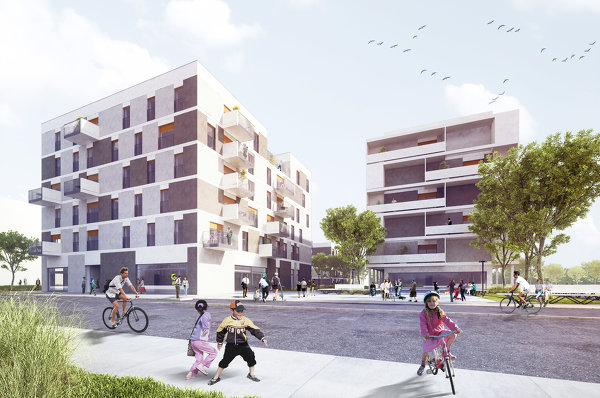Auf dem ca. 5.200 m² großen Baufeld D22 im südwestlichen Bereich der Seestadt Aspern in Wien entstehen im Auftrag der WBV-GPA, der Wohnbauvereinigung für Privatangestellte, drei unterschiedlich ausformulierte Baukörper mit jeweils 4 bzw. 6 Geschoßen. Das Ensemble zeichnet sich durch einen interessanten und ausgewogenen Nutzungsmix aus: Insgesamt werden 77 geförderte Wohneinheiten (davon 26 Smart-Wohnungen) geschaffen, die sich auf ein Haus für eine Baugruppe (Que[e]rbau), ein Wohnheim für behinderte Kinder und Jugendliche der Diakonie Österreich (mit zusätzlich 3 Wohngruppen mit je acht Heimplätzen), Werkswohnungen für das angrenzende General-Motors-Werk sowie Geschäftsflächen aufteilen. Das Baufeld wird zudem freiraumtechnisch mit den angrenzenden Baufeldern (D12, D23) verwoben und setzt so einen attraktiven Akzent innerhalb der Seestadt.
