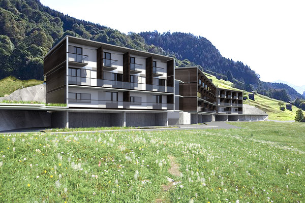 Durch die Wohnanlage "Schloss‐Siedlung" in der Gemeinde Fließ werden 24 Wohneinheiten geschaffen. Davon befinden sich sechs 2‐Zimmer-Wohnungen und zwei 3‐Zimmer-Wohnungen im ersten Geschoß und insgesamt sechzehn 3‐Zimmer-Maisonettewohnungen in den obersten zwei Geschoßen.