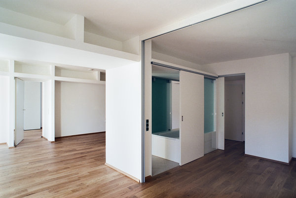 Das langgestreckte "Rückgrat" der gestapelten Häuser im Norden von Wien als Mittelzone für die "dienenden" Funktionen der Häuser war die Voraussetzung dafür, dass die strukturelle Variabilität nutzungsneutraler Flächen über mehrere Etagen hinweg freigespielt werden konnte. Auf den Mautner Markhof Gründen ist es der neutrale Raum, der Platz für unterschiedliche Organisationsstrukturen des Wohnens bietet. Ihnen gemeinsam ist die Mehrfachnutzung von Räumen, das Zusammenschließen von getrennten Einheiten oder das Öffnen zu größeren räumlichen Dimensionen. Ebenso ausschlaggebend wie die punktgenaue Minimierung der Primärkonstruktion ist es, das Ziel nicht aus den Augen zu verlieren: