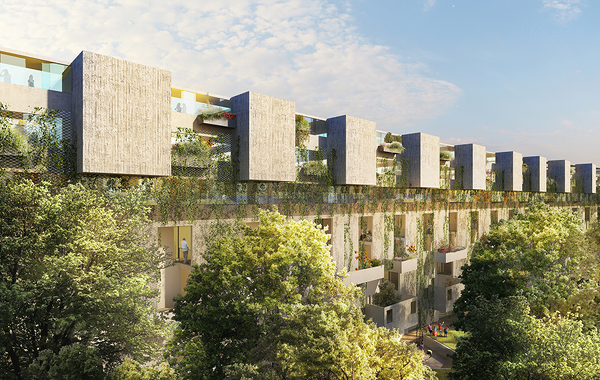 - die Neuentwicklung von Wohnbautypen durch vertikale Einbettung unterschiedlicher Landschaftsräume,