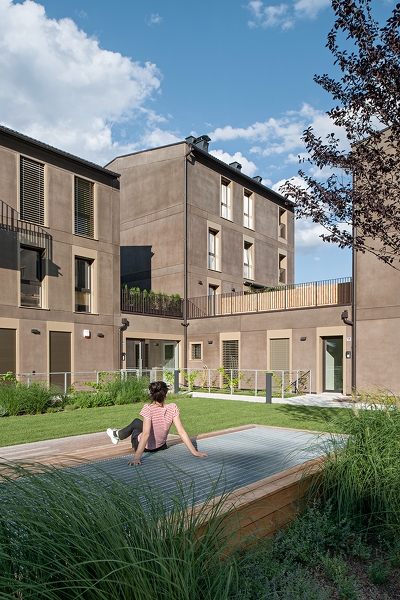 Zentrales Element der direkt in Abstimmung mit den zukünftigen BewohnerInnen entwickelten Wohnanlage in Eppan stellt ein begrünter Innenhof dar, um den sich die fünf wohlkonzipierten Wohnhäuser gruppieren; dieser Freiraum kann gemeinschaftlich genutzt werden und dient somit als Treffpunkt, der das soziale Miteinander fördert.