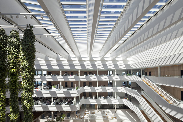 Key product objectives were defined as high thermal performance targets, natural and smoke ventilation options, modular sizing, multiple configurations, integrated motors and accessories. The design and material performance of the slim, glass fibre reinforced framing were critical to maximise daylight and to support the large glass unit sizes. These frames were developed by Velux, based on design criteria set by F+P.