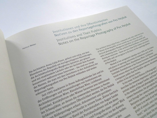 Die Geschichte der modernen Architektur ist bekanntlich (auch) die Mediengeschichte ihrer Präsentation. Markt- und Nutzer-Realität blieben dabei oft auf der Strecke. Heute sind wir kritischer: Wir prüfen nach, verlangen Hintergründe und Reality-Check. Ein wichtiger Teil davon sind umsichtige Fotokünstler, die „Realität“ auch für unser Medium anspruchsvoll formulieren. Pez Hejduk, die einst Margherita Spiluttini assistierte, ist heute eine der anerkanntesten Vertreterinnen dieses Berufs. Entsprechend verdienstvoll ist das Buch: Denn auch der Kontext der Arbeit wird anschaulich dargestellt, von Stimmungen vor Ort (weidende Kühe, Schneedecke auf Baugerät) über Bauherren- und Architektennöte (abgedruckte Auftragskorrespondenz) bis hin zur Verwendung der Fotos in Druck- und Onlineprodukten – nicht nur ambitionierte Magazine, sondern auch Verkaufsbroschüren, Tageszeitungsartikel, Bücher und Websites. Die Auftraggeber werden – erhellenderweise – stets an erster Stelle genannt. Perfekte Chronik-Funktion erfüllen auch Atelierdokus und Architekten-Porträts. Essays renommierter Autoren und klares Design von Andrea Neuwirth vollenden das auffallend schöne Werk. mb