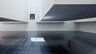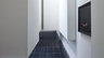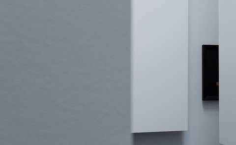 Im Annex klingt der architektonische Eingriff aus und wird einzig mit einer Wand zitiert, die ebenso wie im Vorderteil, an der Decke beginnt und am Nabel endet. Während eine Seite flächig weiß bleibt, dient die Rückseite als Fläche für eine formatfüllende Projektion.