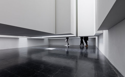 Der Zugang des Gebäudes wird durch einen einfachen Vorbau verdeckt, der durch einen schmalen Schlitz die einzige Verbindung zum Dahinter bildet, natürlich zu klein um tatsächlich einen Eindruck zu verschaffen. Der Besucher soll nicht vorbereitet sein. Er tritt seitlich ein und findet sich ohne Ankündigung im Korridor wieder.